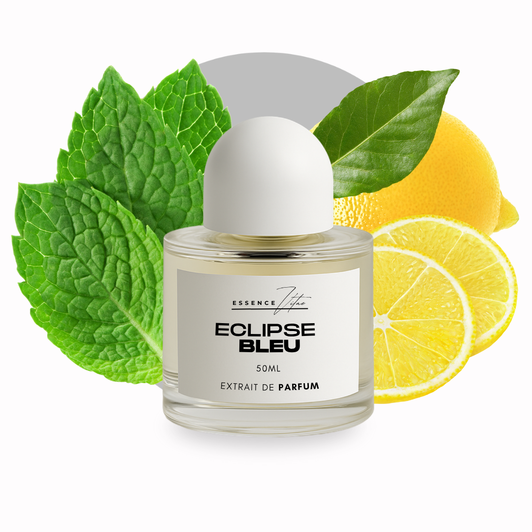Eclipse Bleu: Impression of Bleu de Chanel. A fresh burst of Lemon Zest, Bergamot, Mint, Pineapple, Lavender, Sandalwood & Cedar creates a citrusy woody charm.