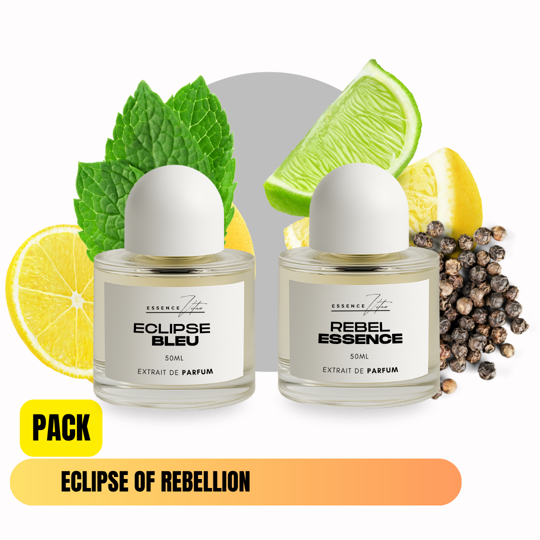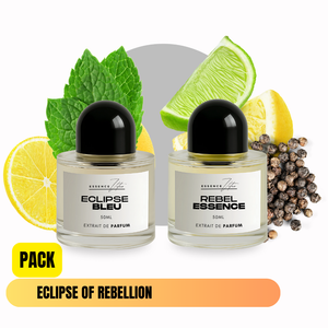 Unleash power and sophistication with the Eclipse of Rebellion Pack — a dynamic duo featuring two of our best-selling masculine fragrances: Eclipse Bleu (inspired by Bleu de Chanel) and Rebel Essence (inspired by Dior Sauvage). This exclusive pack brings together the cool elegance of Eclipse Bleu with the raw intensity of Rebel Essence, offering the perfect scent combination for every side of the modern man.