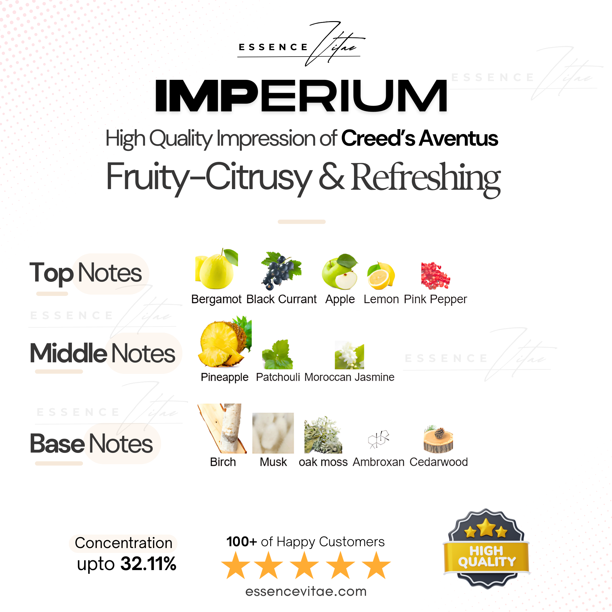 Experience the legendary vibe of Imperium in a convenient 5ml tester — a powerful, modern fragrance inspired by Creed Aventus. Created for leaders and confident achievers, this sample lets you explore its signature fruity-smoky blend before choosing the full bottle.