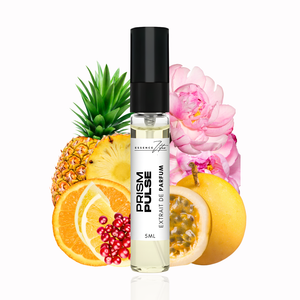 Experience the playful and radiant charm of Prism Pulse in a convenient 5ml tester. This fruity-floral Extrait de Parfum bursts with juicy passionfruit, grapefruit, and pineapple, melts into a soft floral heart, and settles into a delicate blend of musk and woody notes.